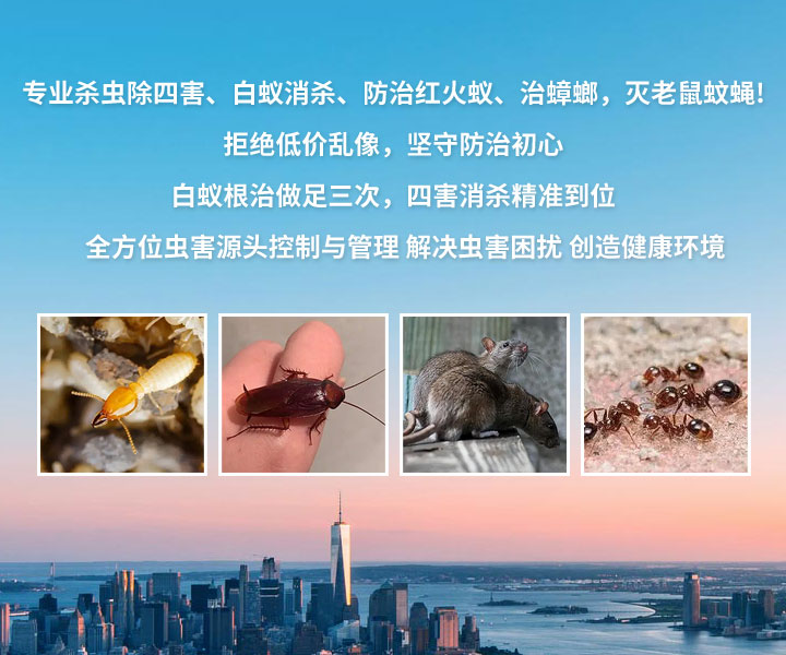 公司主要承接:佛山白蚁防治,三水新建房屋预防白蚁工程,南海室内装修预防白蚁工程,佛山杀灭白蚁,三水西南房屋杀白蚁,云东海家庭杀灭白蚁服务,芦苞厂区仓库灭治白蚁工程,南海和顺住宅小区、花园别墅灭治白蚁工程,盐步水库堤坝白蚁防治,园林、古树白蚁防治。佛山四害消杀,南海黄岐除四害(蚊、蝇、蟑螂、老鼠)消杀工程,大沥厂区四害消杀,三水白坭厂房除四害服务,乐平街道四害消杀工程,西南厂区杀虫灭老鼠,各种环境大型灭老鼠工程,室外草坪绿化大面积杀灭红火蚁服务。